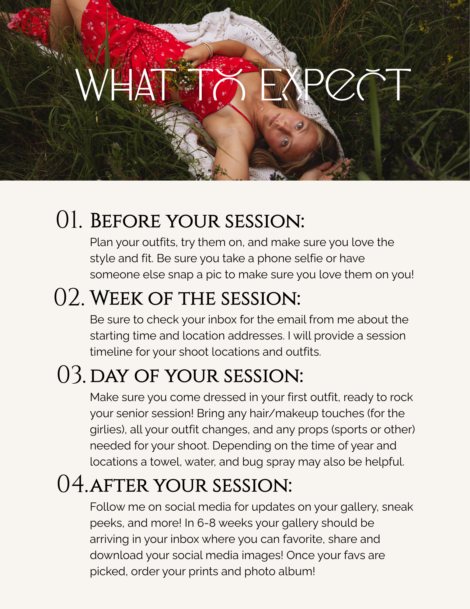 Senior’s Style Guide to your Senior photo session Client GuidesClient Style Guides Mar 11 Written By Kiri Oakley Click here to download/print this checklist! Click here to download, print and fill in your session info! Kiri Oakley