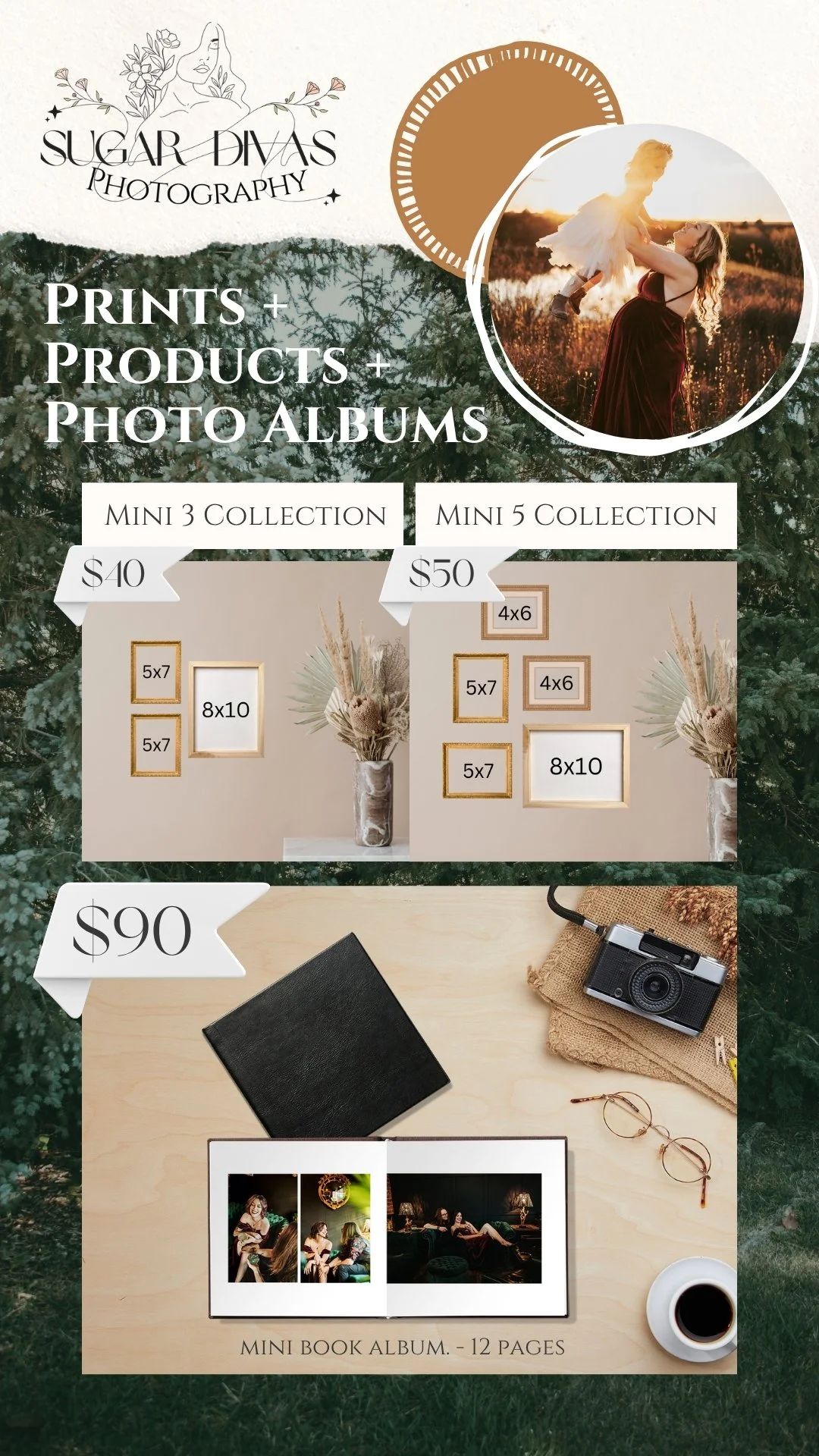 I offer a few different print packages, digital packages, and also photo albums including the mini book album!