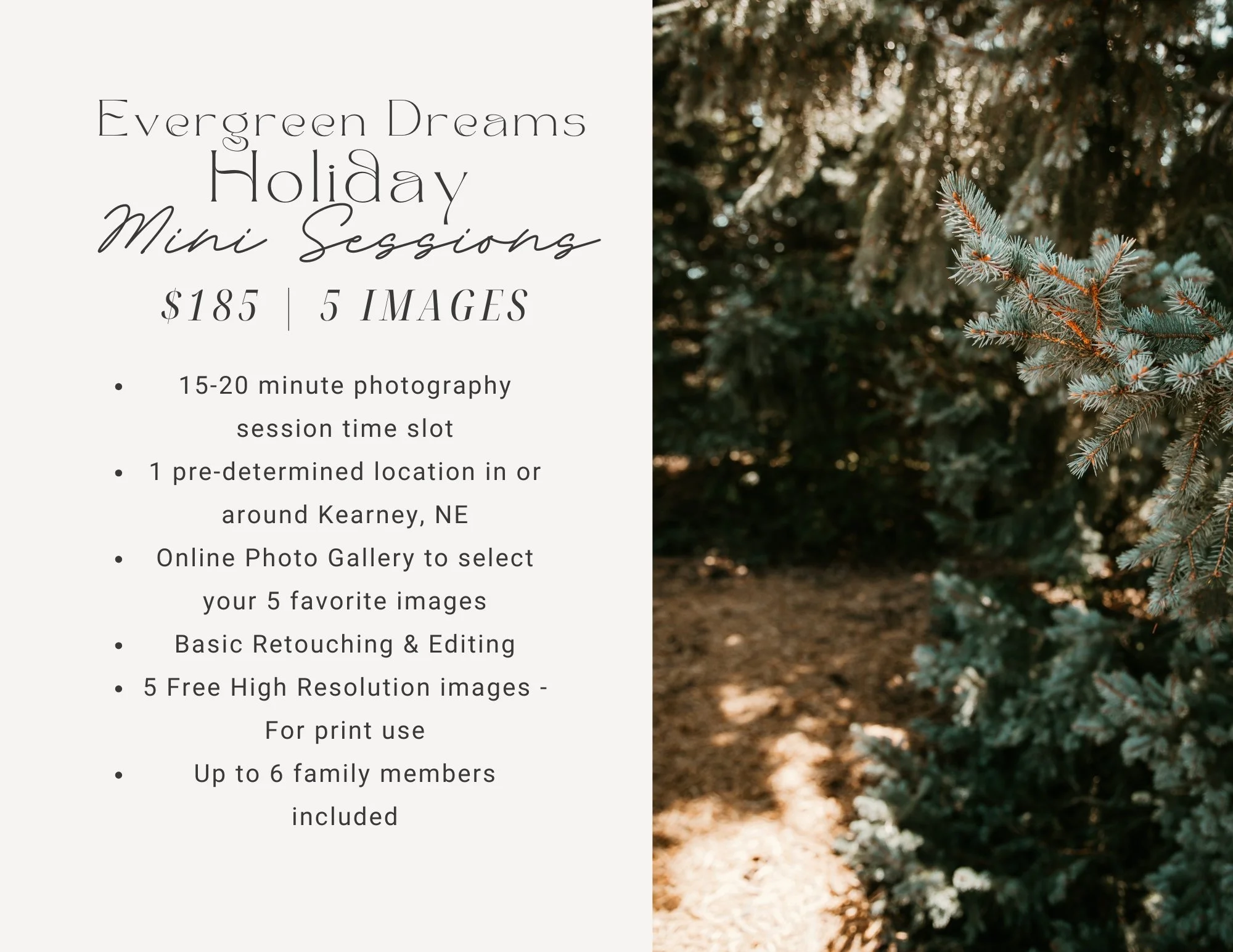 The Perfect Outdoor Natural Evergreen Location for your special Seasonal Holiday Photo session.