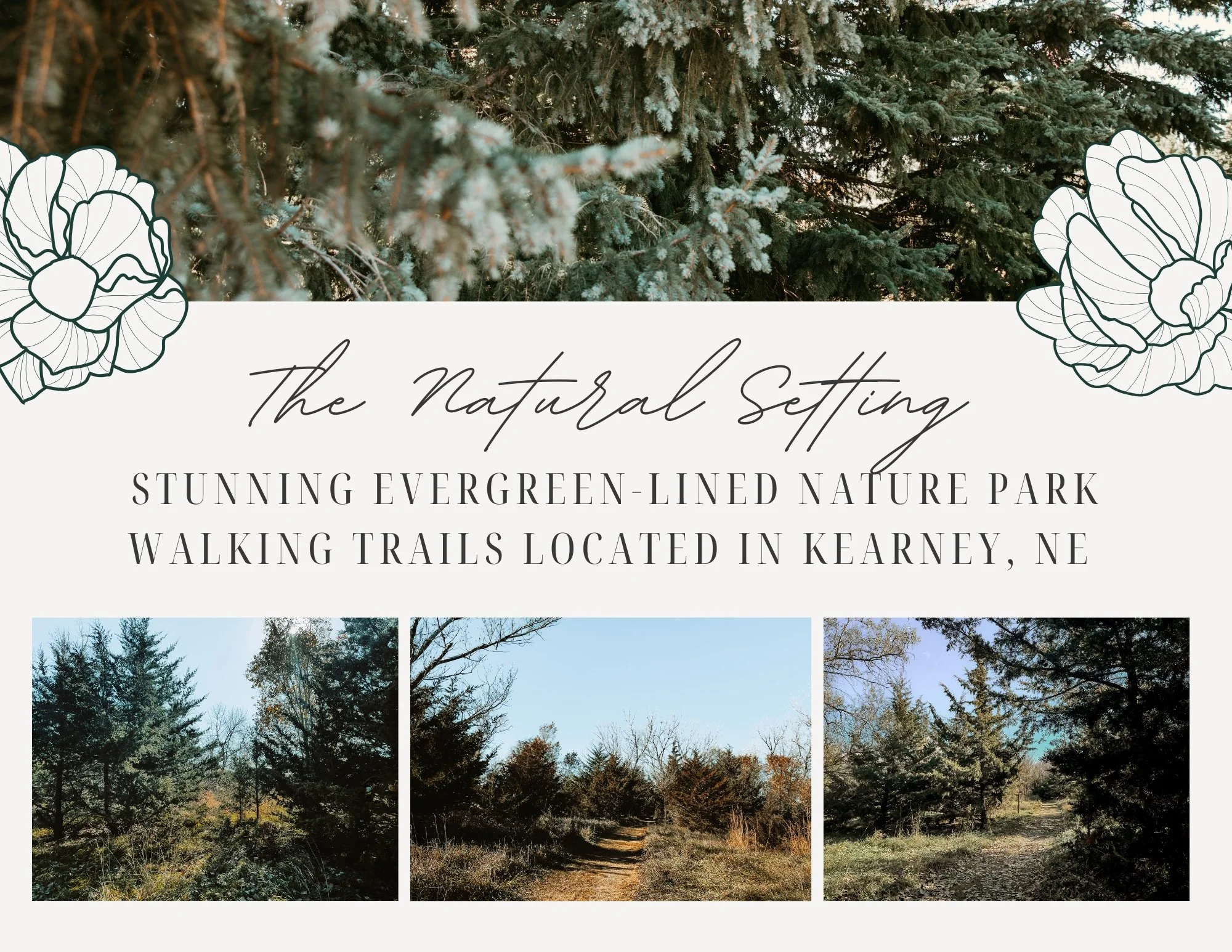 Take a Holiday stroll amongst the evergreen-lined nature trails in Kearney, NE. Have a little snowball fight, snuggle into a warm blanket nestled under the evergreen trees, and make special holiday memories this season.